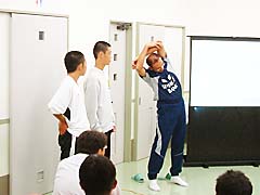私は、試合の前のコンディショニング作りとして、2分間選手に目をつぶらせイメージトレーニングで勝利の意欲をわかせ、集中力を高めている。その後、ストレッチ、ランニングを10分間、そしてボールを使ったエクササイズを10分間、最後に5分間ボールを自由に蹴らせている。